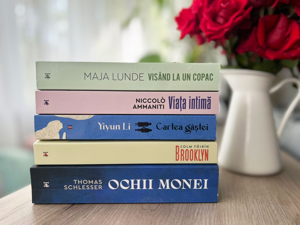 • Brooklyn, de Colm Toibin: „Câștigător al Costa Book Award în 2009 și nominalizat, în același an, la Man Booker Prize, finalist, în 2011, la Dublin Literary Award, selecționat de The Observer în topul celor mai bune zece romane istorice și ecranizat în 2015 în regia lui John Crowley, scenariul fiind semnat de Nick Hornby, cu Saoirse Ronan în rolul principal, Brooklyn este o explorare plină de emoție a ideii de identitate și apartenență, dar și a puterii transformatoare a dragostei.” (Ed. Humanitas Fiction; trad. Cristina Nicolae)