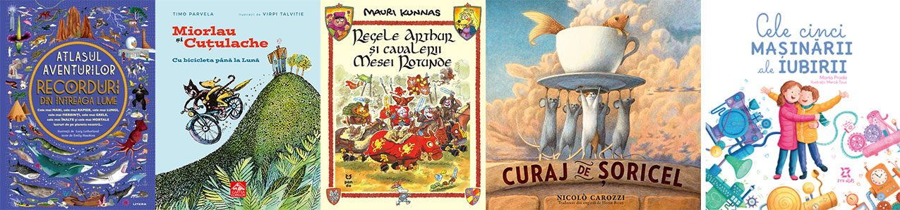 • Miorlau și Cuțulache. Cu bicicleta până la Lună, de Timo Parvela: „Cu bicicleta până la Lună este primul roman din seria „Miorlau și Cuțulache“, despre o pisică și un câine care trăiesc într-o casă albastră „ca seninul cerului” de pe vârful unui deal. Capitolele scurte, însoțite de ilustrații, cu text accesibil și mult umor, fac acest roman foarte potrivit pentru copiii care citesc singuri și doresc să facă trecerea spre lecturile de mai mare întindere.” (Ed. Cartea Copiilor; trad. Sigrid Crăsnean)