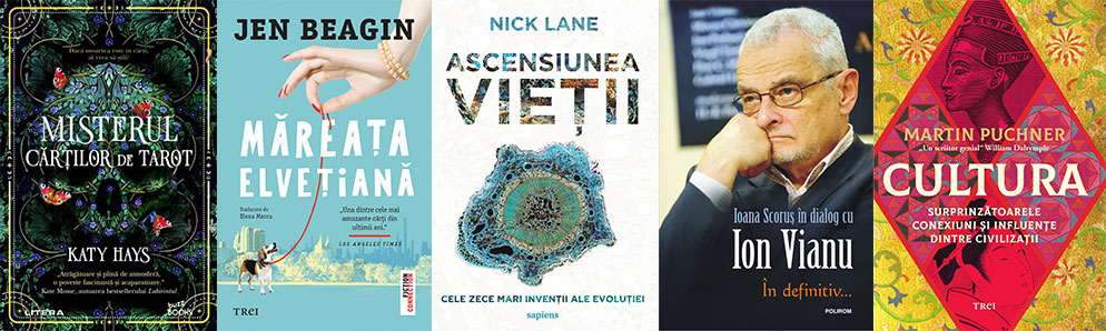 • Cultura, de Martin Puchner: „Poate fi cultura o formă de proprietate? Această relatare extraordinară demonstrează că istoria civilizațiilor din întreaga lume este una bazată pe amestec, împărtășire și împrumut. Martin Puchner arată cum, secole la rând, diverse forme de artă au traversat continentele pentru a produce capodopere.” (Ed. Trei; trad. Radu Șorop)