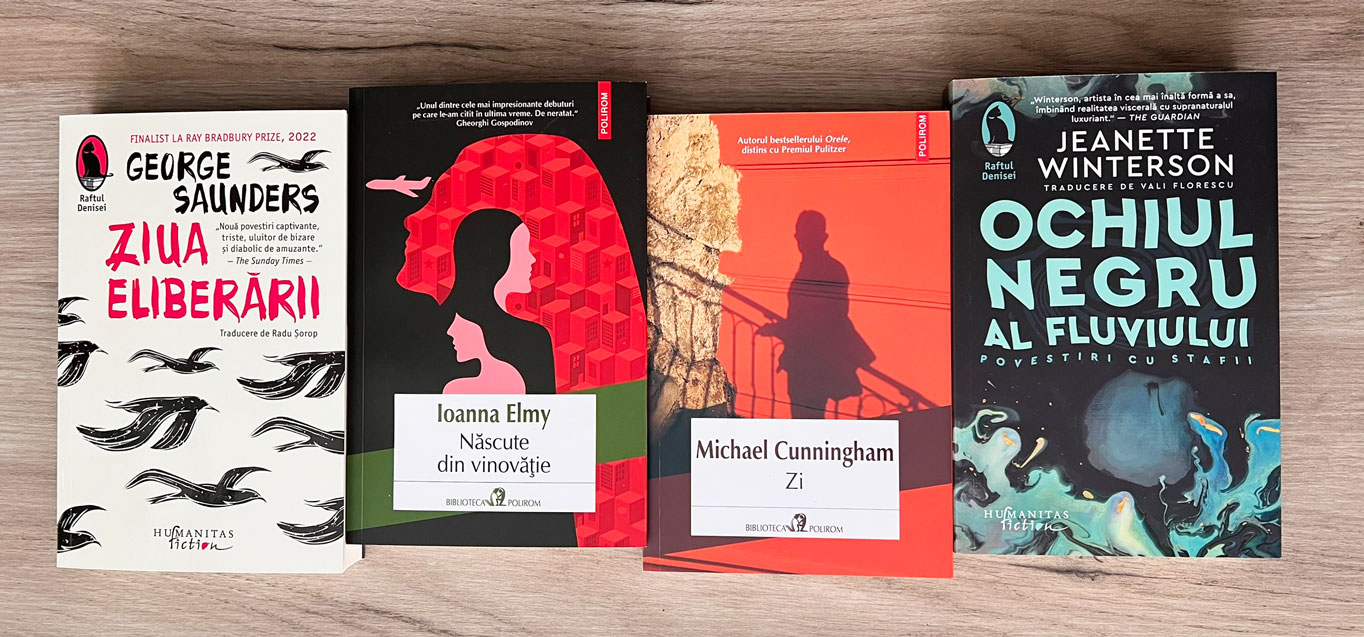• Ziua eliberării, de George Saunders: „Cu Ziua eliberării, finalist la Ray Bradbury Prize 2022, tradus în peste 20 de țări, George Saunders revine magistral la forma literară care l-a consacrat, oferind un volum de povestiri incisive și tulburătoare, care explorează natura umană în fața opresiunii, tehnologiei și alienării. Povestirile lui Saunders, alcătuind un univers neașteptat, pătrund în cutele adânci ale subconștientului și scot la iveală monștri, dar și victime.” (Ed. Humanitas Fiction; trad. Radu Șorop)